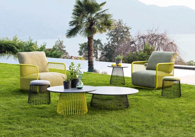 Discover how to combine the Bruce design outdoor pouf with furnishings from the BertO SOUNDS outdoor collection.