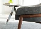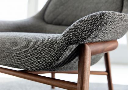• base made of Canaletto walnut solid wood, produced with circular section and differentiated diameter to support the wide and comfortable seat and backrest mono-block frame