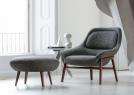A round pouf which transforms comfort in design, it can match the Hanna armchair or it can be used as a separate element as a soft foot-rest or small table for magazines or trays. The Hanna pouf has an original design, the result of perfect harmony between traditional upholstery techniques, natural materials such as solid walnut and a suitable dimension to create a versatile and elegant furnishing accessory.