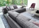 In the modular version with chaise-longue, the soft Tommy sofa presents an end element available in the version with 2 – 5 seats with a chaise-longue which embellishes the proportions and volumes, defined by elegant profiles and covers in fabric specially studied for this project.